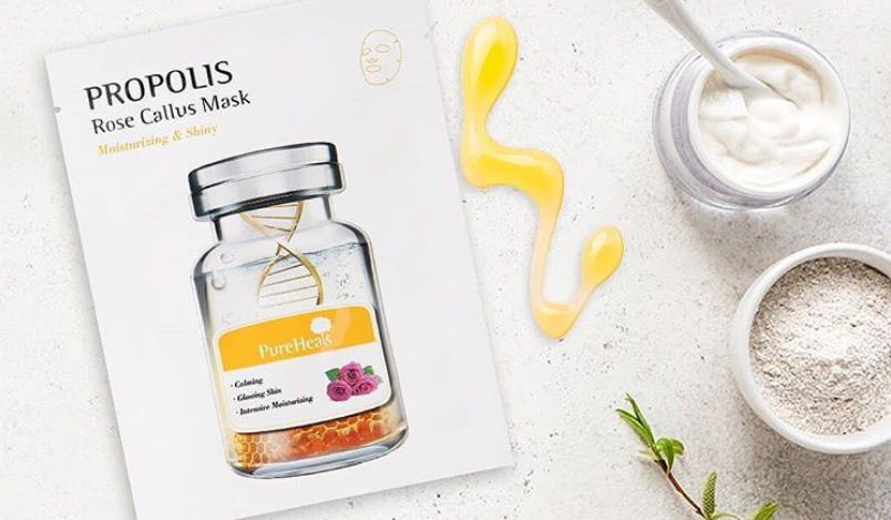 Pureheals Propolis Rose Callus Mask. Sesuai namanya, kandungan utamanya tentu saja propolis. Propolis mengandung resin yang bermanfaat sebagai zat anti peradangan sehingga propolis memang menjadi salah satu kuncian untuk meredakan jerawat atau bahkan mencegah jerawat. Selain itu, propolis juga membantu regenerasi kulit, menangkal radikal bebas dan menjaga kekenyalan kulit. Pureheals Propolis Rose Callus Mask juga diklaim bisa membantu menenangkan kulit, membuat kulit lebih glowing dan juga menjaga kelembapan kulit.
