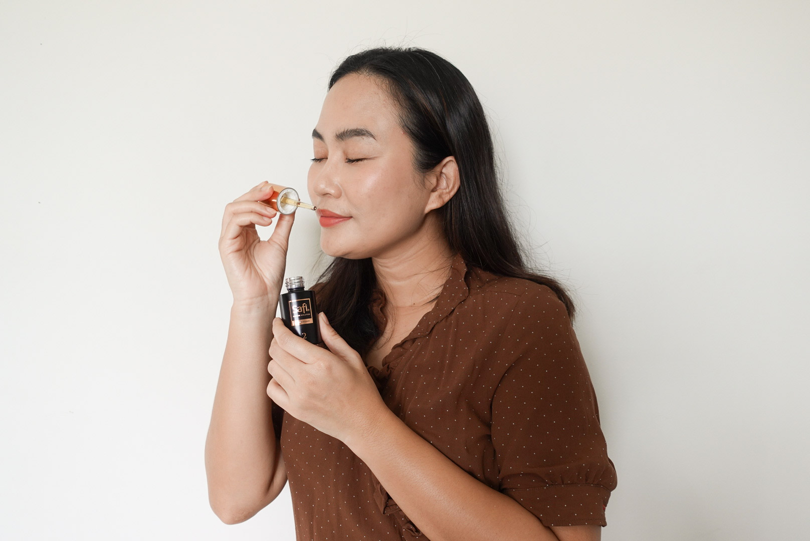 Sejauh saya mengenal produk-produknya Safi, menurut saya rangkaian Safi Expert Solutions ini bisa dibilang yang paling terlihat premium. Kombinasi warna hitam dan rose gold pada packaging nya memperlihatkan memang produk ini punya kandungan yang spesial, halal, teruji, dan diperuntukkan untuk pengguna yang lebih mature. Personally saya juga suka dengan tampilan botol kaca berwarna hitam ini. Selain terasa lebih mewah, botolnya juga bisa lebih melindungi formula skincare di dalamnya dari paparan sinar matahari.
