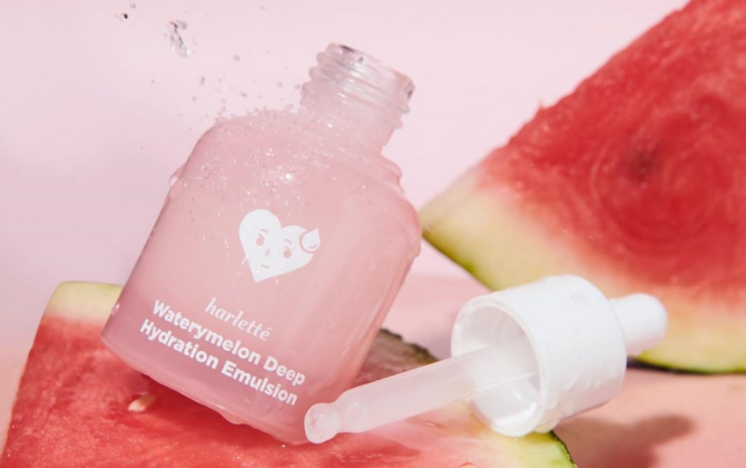 Salah satu skincare berbahan semangka dari Harlette ini cukup unik, sebab merupakan serum dan light moisturizer 2 in 1. Emulsion ini menghidrasi dan menenangkan kulit. Produk ini bisa jadi hydrating serum untuk kulit kering, sekaligus jadi moisturizer untuk kulit berminyak. Harga satu botolnya adalah Rp175.000.