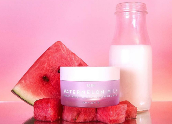 Masih dari geng semangka. Kali ini sleeping mask dari Sashi yang mengandung watermelon seed oil, lactic acid, dan Centella Asiatica. Jadi, selain membantu melembapkan kulit, sleeping mask ini juga mencerahkan dan bertindak sebagai antioksidan. Sleeping mask ini bisa kamu beli seharga Rp185.000.
