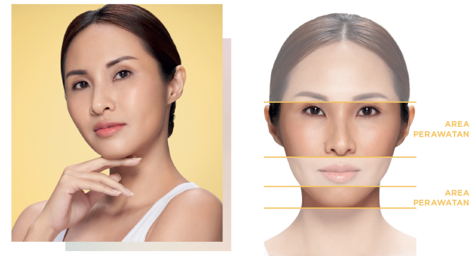 Fokus area treatment ini adalah area pipi hingga ke dagu. Fungsinya untuk mengencangkan kulit, meningkatkan elastisitas kulit dan menyamarkan garis halus pada wajah. Secara instant, tampilan wajah dan kulit kamu akan terlihat lebih muda.