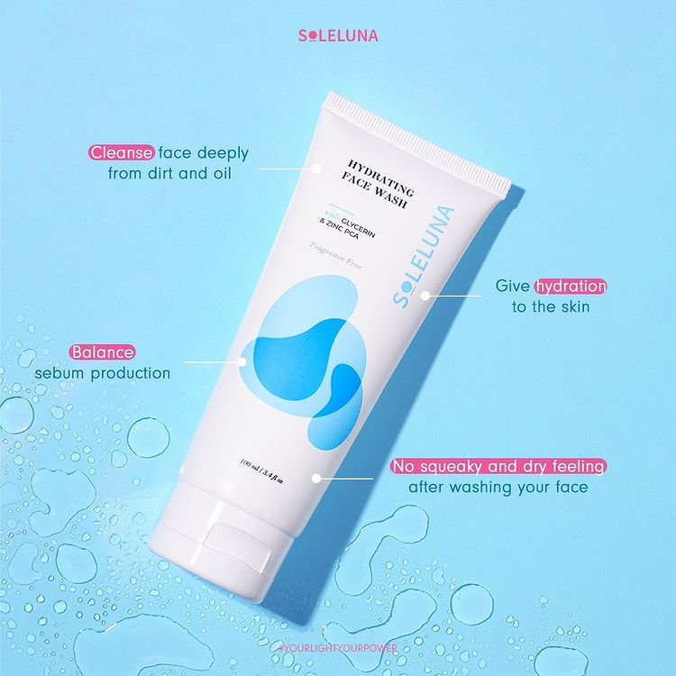 Produk pertama yang akan saya bahas ini baru saja rilis Oktober lalu. Kandungan di dalamnya ada glycerin dan zinc PCA yang bisa membantu mengontrol produksi sebum sekaligus menjaga kelembapan kulit. Meski teksturnya cair, hydrating face wash dari SOLELUNA diklaim ampuh untuk membersihkan kotoran. Poin plusnya, produk ini nggak akan bikin kulit terasa kering karena kandungannya mampu menghidrasi.