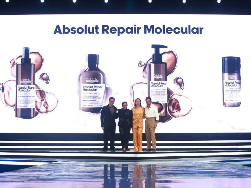 L’Oréal Professionel juga meluncurkan rangkaian produk inovasi terbaru mereka melalui acara ini, yang bernama Absolut Repair Molecular. Ada empat produk yang tersedia, yaitu pre-shampoo, sampo, rinse-off serum, dan leave-in mask.