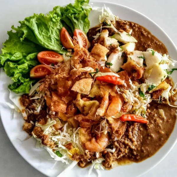 Ini juga jadi salah satu kuliner yang nggak boleh dilewatkan. Kalau kamu suka ketoprak atau gado-gado, bisa jadi kamu juga suka yang satu ini. Di tahu gimbal, ada lontong, bakwan udang, tauge, kol, yang diberi bumbu kacang. Oh iya, tahu gimbal juga isinya nggak cuma tahu saja, ya! Tahu gimbal sendiri memiliki banyak pilihan. Tapi, kamu bisa memilihnya sesuai selera dan mana yang nggak ramai karena Pak Eddy memiliki beberapa cabang di satu area, salah satunya di depan SMA 1.