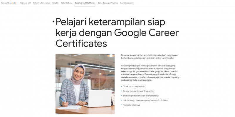 Yup, Google juga punya berbagai online course untuk meningkatkan keterampilanmu. Pilihan kelasnya memang nggak banyak dan fokus dalam bidang teknologi saja, tetapi ada beberapa kelas yang tersedia dalam bahasa Indonesia. Misalnya seperti Analisis Data, IT Support, Desain UX, dan Manajemen Proyek. Google juga menawarkan bantuan finansial untuk kamu yang ingin mengikuti kelasnya namun belum cukup dana, lho!