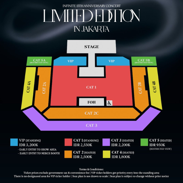 Konser ‘INFINITE 15th ANNIVERSARY CONCERT: LIMITED EDITION IN JAKARTA’ ini akan diadakan di Tennis Indoor Senayan, pada 18 Januari 2025 mendatang, pukul 19.00 WIB. Sementara, untuk tiketnya akan mulai dijual pada 2 Desember 2024 pukul 10.00 WIB di infiniteinjakarta.com