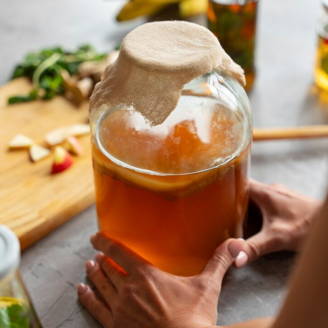 Pernah dengar istilah “gut-skin connection”? Ternyata, kondisi usus kita bisa sangat memengaruhi kesehatan kulit. Kombucha mengandung probiotik alami yang bisa bantu menyeimbangkan bakteri baik dalam usus. Ketika pencernaan lancar dan usus sehat, kulit juga jadi lebih bersih, bebas jerawat, dan nggak mudah meradang.