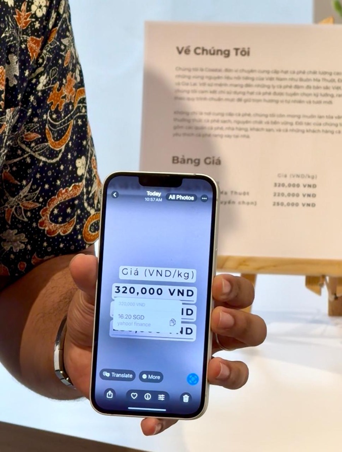 Lagi pergi business trip ke negara dengan bahasa yang nggak kamu kuasai dan mata uang yang konversinya kamu belum familiar? Tinggal ambil foto dari Camera, buka di Gallery dan klik ikon Live Text di kanan bawah foto. Dengan satu klik saja, kamu bisa langsung terjemahkan tulisan ke bahasa pilihan. Ini juga bisa kamu pakai untuk mengonversi harga ke mata uang yang kamu inginkan saat lagi berbelanja.