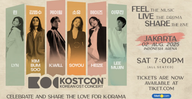 KOSTCON 2025, Korean OST Concert akan diadakan di Indonesia Arena, Senayan, pada tanggal 2 Agustus 2025. Nggak cuma Indonesia, tur ini akan menghampiri beberapa kota di Asia lainnya dan Indonesia menjadi pembuka. Dipromotori oleh TMC, konser ini akan mengundang beberapa penyanyi seperti Kim Bum Soo yang terkenal dengan lagu ‘I Miss You’ untuk drama hits tahun 2003 ‘Stairway to Heaven’.