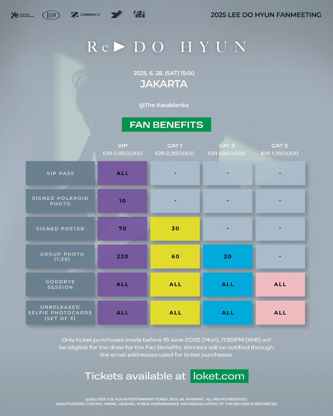 Yup, acara yang bertajuk 2025 LEE DO HYUN FANMEETING [Re ▶ DO HYUN] in JAKARTA ini akan dilaksanakan di The Kasablanka Hall, pada tanggal 28 Juni 2025. Acara ini bakal diadakan mulai pukul 3 sore. Jadi, kamu nggak perlu khawatir pulang terlalu malam karena acaranya mulai lebih cepat.