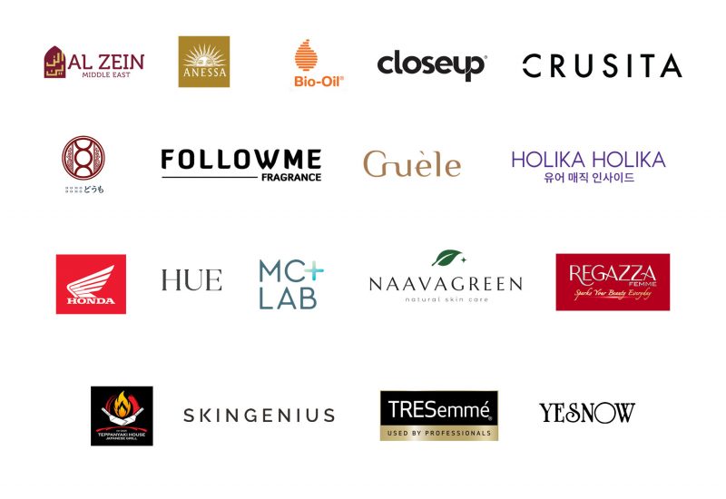 Lanjut, ada Keyoura, L’oréal Paris, La Roche Posay, LUX, MAC, Majika, Masakan Ande, Maybelline, MERU, Mie Karma Ayam, Mirae, Miss Daisy, MMRS Memories, mosseru, Nika, Noroid, NPure, Nutri Beyond, Past Nine, Polynia, Raja Rawit, Rintik Skincare, Rocketindo, Saviosa, Scent of Jarte, Scentalgia, SH-RD Hair Care, Sunsilk, Vita Laboratories, Teh Cap Poci, The Body Tale, Tjap Tickger, Tubbees, dan Wondermis.