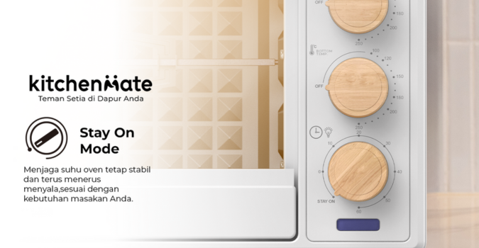 Selain fitur yang mendukung untuk UMKM, Kitchenmate Oven Listrik Low Watt terbaru kini juga tersedia dalam pilihan warna baru navy dan pada warna white dengan sentuhan desain gagang kayu. Desain ini nggak cuma fungsional, tetapi juga mempercantik estetika dapur dan interior rumah.