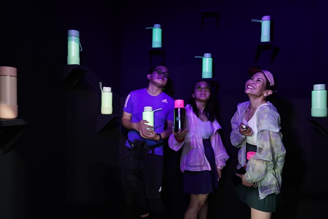 Efek ini tidak hanya menarik secara visual, tetapi juga sangat berguna untuk memudahkan kamu menemukan botol saat malam hari, baik di kamar tidur, saat mengikuti aktivitas olahraga malam, atau ketika bekerja di shift malam. Yang menarik, glow yang dihasilkan bisa berbeda-beda tergantung bagian botol, karena tiap komponen seperti tutup, badan, dan sedotan memiliki material berbeda yang menyerap cahaya dengan kekuatan yang tidak sama—memberikan kesan glow yang unik di setiap botol.