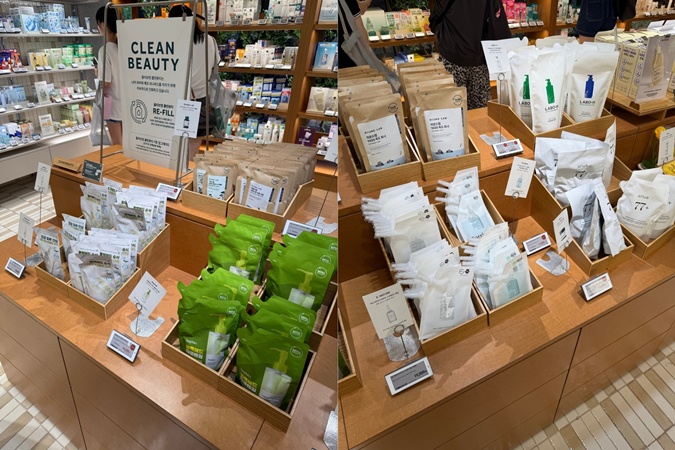 Meski nggak terlalu besar, section Clean Beauty membantu kamu lebih mudah untuk menemukan skincare dengan kemasan refill. Jenama skincare Korea yang sering diincar, seperti Anua, Round Lab, S. Nature, Be Plain, ternyata menyediakan cleanser hingga toner dalam refill pouch. Selain less plastic, tentunya harganya juga jadi lebih ekonomis.