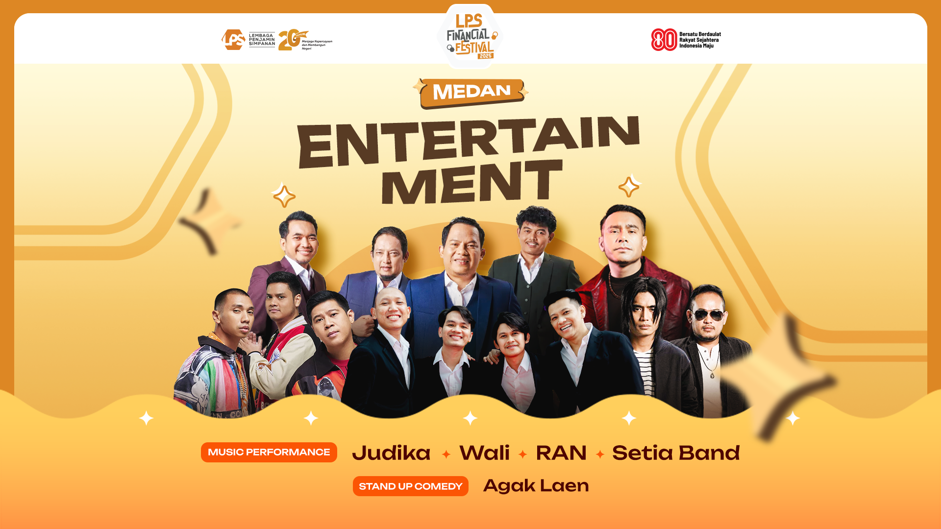 Line-up hiburan di Medan kali ini pun nggak main-main! Pada 20 Agustus, penonton akan dibuat tertawa dengan penampilan stand-up comedy khas Agak Laen, dilanjutkan dengan musik hits dari RAN dan Wali. Keesokan harinya, 21 Agustus, Agak Laen kembali hadir membawakan materi kocak yang mencairkan suasana, sebelum Judika dan Setia Band mengambil alih panggung dengan lagu-lagu andalan yang membuat penonton sing along sampai puas. Perpaduan musik dan komedi ini membuat suasana festival terasa ringan, dekat, dan pastinya memorable.