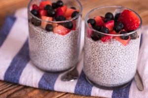 Yang satu ini merupakan salah satu snack sehat untuk diet yang banyak peminatnya! Sesuai namanya, chia seed pudding ini terdiri dari kombinasi yang simpel, seperti chia seed dan susu. Kamu bisa merendam chia seed ke dalam susu sesuai dengan takaran yang pas, kemudian bisa tambahkan yogurt dan potongan buah atau madu, supaya rasanya lebih manis! Kombinasi bahan-bahan ini juga tinggi serat, mengenyangkan, plus ada kandungan omega-3 dari chia seed-nya.