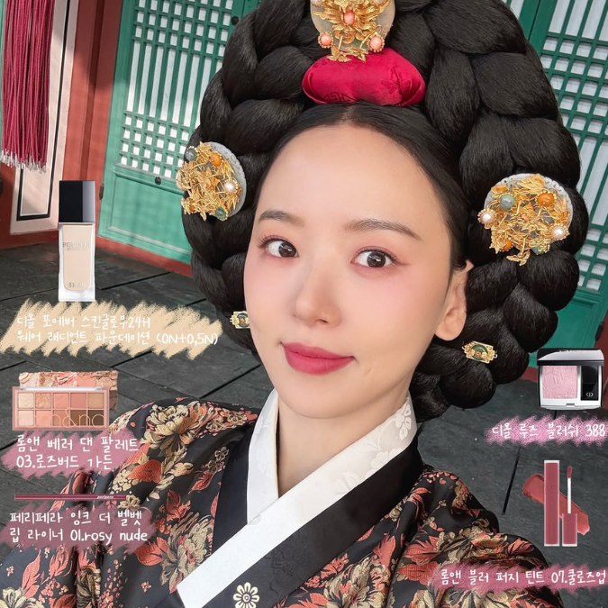 Dalam sebuah foto yang diunggah Kang Hanna di Instagram. Ia secara sukarela membeberkan produk makeup apa saja yang digunakan dalam foto tersebut. Alih-alih gatekeep, ia justru memberi tahu dan mengajak penggemar maupun pengikut Instagramnya untuk ikutan makeup seperti karakter Kang Mok Ju. Dalam foto tersebut, sebagai selir terlihat nggak terlalu medok makeup-nya, namun tetap flawless.