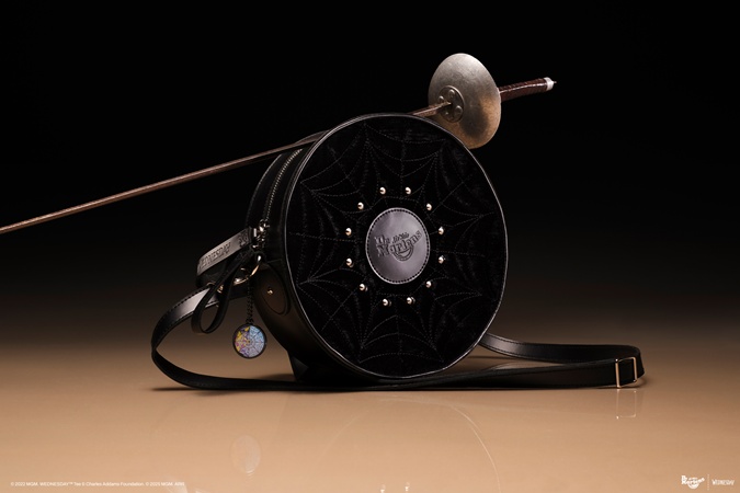 Nggak ketinggalan, Mini Wednesday Backpack juga hadir sebagai pelengkap outfit. Tas berbentuk bulat ini memadukan beludru hitam dengan detail jaring laba-laba dan studs perak, yang berkesan cute but deadly, persis kayak Wednesday sendiri.