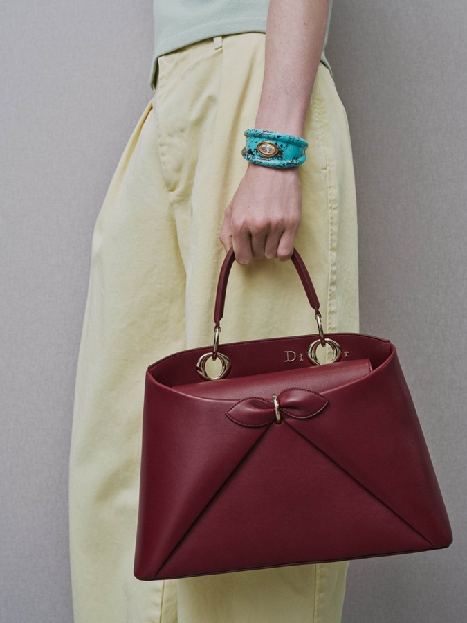 Debut Jonathan Anderson di Dior Spring/Summer 2026 jadi salah satu yang paling dibicarakan musim ini. Salah satunya berkat New Cigale Top Handle yang dipakai Jisoo. Bentuknya yang sleek, punya twist unik berupa satu curved top handle yang bikin siluetnya tampak “jatuh” ke satu sisi saja. Tas ini terasa feminin dengan pilihan warnanya, tapi tetap punya sisi edgy tanpa effort berlebih. Detail kecil dari penulisan logo Dior yang menggunakan ring dari handle-nya juga bikin tas ini semakin ingin dimiliki.