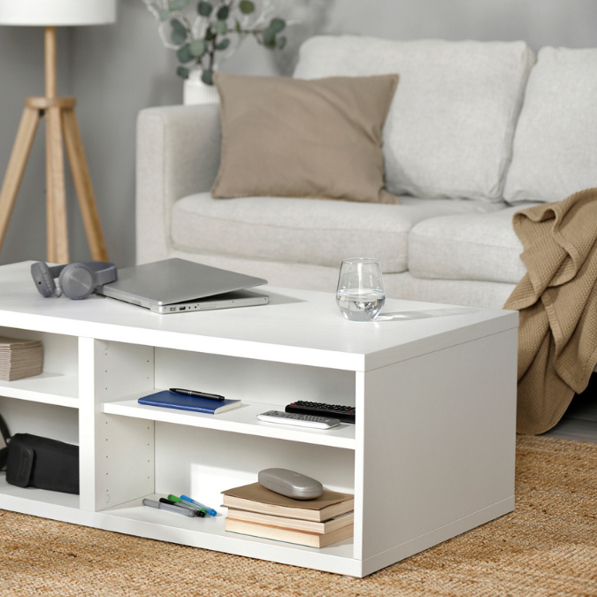 Tapi nggak semua jenis penyimpanan cocok kalau kamu ingin ruang tamu tetap terlihat ringan. Perabot multifungsi jadi pilihan yang lebih pas karena bisa menampung kebutuhan sehari-hari tanpa membuat ruangan terasa penuh. Kabinet dinding EKET, misalnya, bisa menambah kapasitas simpan tanpa memakan area lantai. Sementara meja kopi BESTÅ atau meja TV HAUGA menawarkan penyimpanan ekstra yang bikin ruang tamu tetap rapi dan gampang ditata ulang kapan saja.