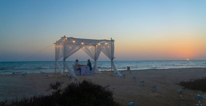 Resort gurun mewah di kawasan ini menyajikan pengalaman romantis yang berbeda yaitu glamping di bawah langit penuh bintang, naik unta di bawah cahaya bulan, hingga candle light dinner di tengah gurun.