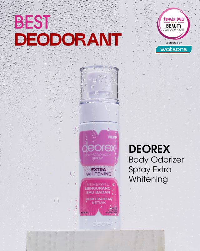 Bau badan jadi concern banyak orang dan Deorex Body Odorizer Spray Extra Whitening adalah salah satu jawaban yang tepat! Sebagai winner dari kategori Best Deodorant, deodorant ini mampu membantu mengurangi bau badan dengan cepat dan kasih rasa fresh yang tahan lama. Bentuk spray-nya juga mempermudah kamu ketika mengaplikasikan ke ketiak. Hasilnya juga nggak lengket atau meninggalkan residu berlebihan.