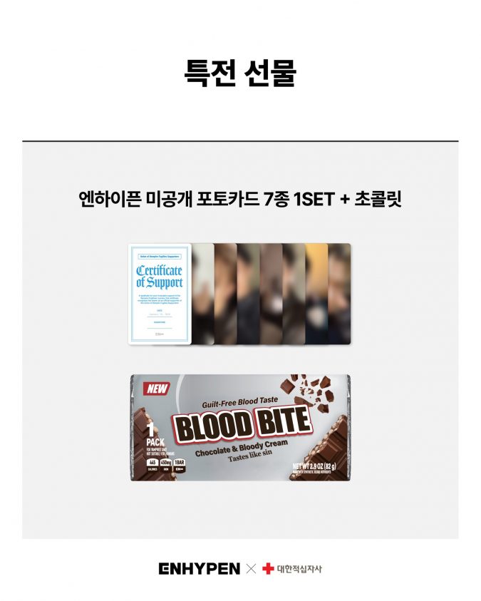 Lewat kolaborasi ini, siapa pun yang mendonorkan darah di periode kampanye berkesempatan mendapatkan Special Gifts berupa photocard dari ketujuh member dan cokelat “BLOOD BITE” yang menjadi bagian dari lore di comeback “THE SIN:VANISH”. Kampanye donor darah ini begitu menarik perhatian karena in-line banget sama konsep vampir yang melekat pada JUNGWON, HEESEUNG, JAY, JAKE, SUNGHOON, SUNOO, dan NI-KI sejak mereka debut. Fans turut excited dengan konsep rangkaian comeback kali ini yang unik dan well-thought-out banget!
