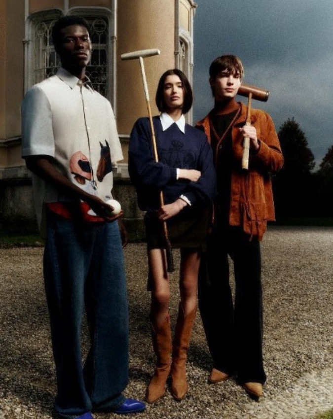 Palet warna navy mendominasi koleksi ‘IN SELLA’, memberi kesan clean, elegan, dan timeless. Lini knitwear seperti sweater, rompi, hingga cardigan bermotif kepang menampilkan monogram “V” dan detail jahitan yang terinspirasi dari pelana kuda. Untuk tampilan yang lebih casual, Vespa menghadirkan sweatshirt dan kaos dengan desain ringan khas Vespa, serta kemeja poplin bergrafis playful yang menggambarkan sosok pria berhelm Vespa dan seekor kuda yang menikmati espresso.
