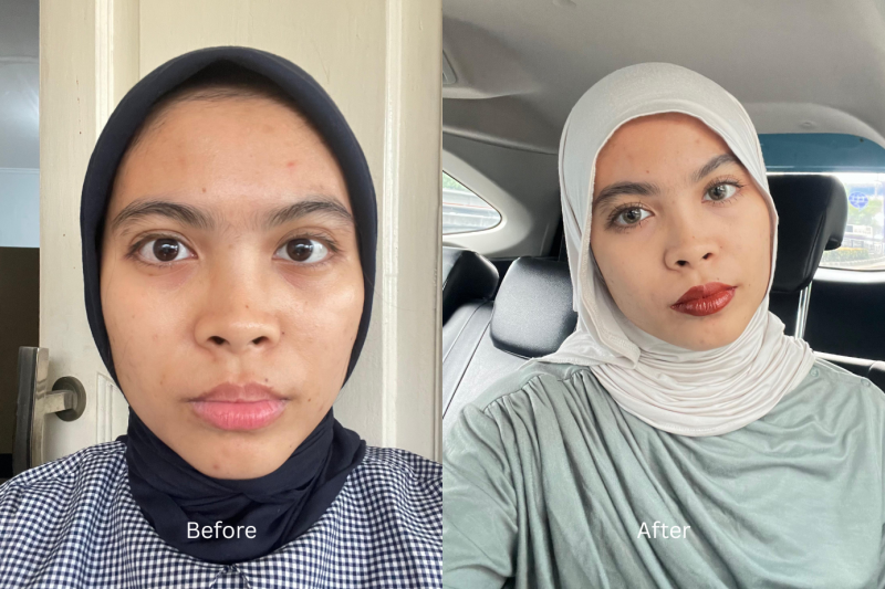 Beberapa hari setelah treatment, aku mulai melihat perubahan yang cukup signifikan. Kulit kelihatan lebih cerah dan tone-nya lebih merata. Bekas jerawat yang sebelumnya cukup tebal, jadi lebih samar, dan overall complexion terlihat lebih glowing, tapi bukan oily.