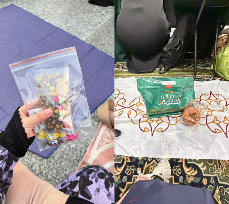 Di depan setiap orang, biasanya sudah tersedia paket sederhana untuk berbuka puasa, seperti kurma, air zamzam, roti, hingga yogurt atau susu. Menariknya, banyak juga jamaah yang membawa makanan sendiri, lalu membagikannya kepada orang di sekitar mereka. Bahkan jika kamu datang sendirian, hampir pasti akan ada orang yang menawarkan makanan untuk berbuka. Suasananya terasa sangat hangat karena semua orang berbuka bersama, meski berasal dari negara yang berbeda dan nggak saling mengenal, lho!
