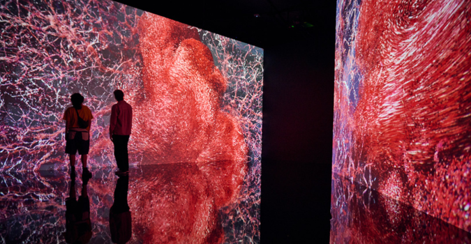 Begitu masuk, kamu langsung disambut instalasi merah dramatis karya Chiharu Shiota berjudul ‘The Network Within’. Instalasi ini menggambarkan tubuh manusia seperti jaringan yang saling terhubung, mirip pembuluh darah atau sistem pernapasan, tapi dengan sentuhan artistik yang emosional. Nggak cuma itu, ada juga pengalaman VR berjudul Evolver yang mengajakmu masuk ke dalam tubuh manusia, mengikuti perjalanan oksigen dari mulut sampai paru-paru.