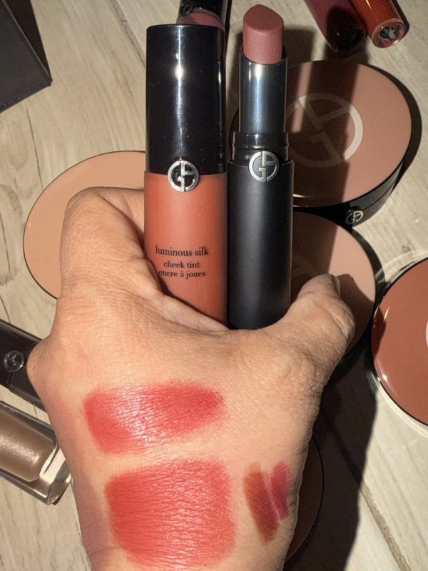 Ini dia salah satu part yang paling bikin orang-orang penasaran dan heboh! Di caption Instagram @cgonzalezbeauty, ia mengatakan bahwa blush yang dipakai di wajah Sabrina adalah produk yang belum dirilis “UNRELEASED Blush – coming soon from @armanibeauty”. And yes, dari foto swatches yang dibagikan, terlihat warna blush warm rosy-peach yang manis banget dan memberikan efek flushed di pipi. Untuk menyempurnakan area pipi, Sabrina juga menggunakan Cheek Tint shade 12 untuk color correction dan shade 50.5 yang kemungkinan digunakan sebagai highlight atau blush topper.